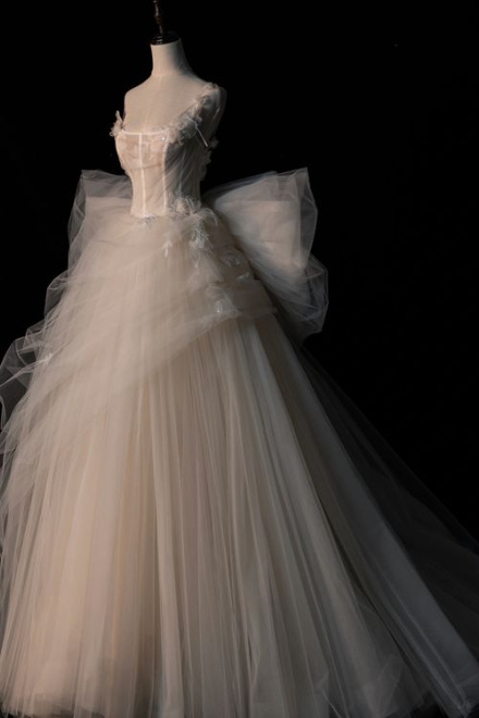 Charming A Line Elegant Ball Gown Straps Long Tulle Wedding Dresses