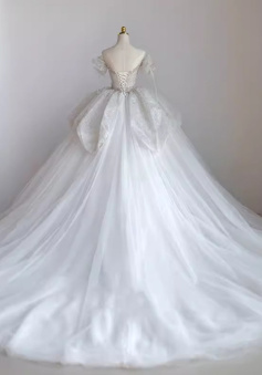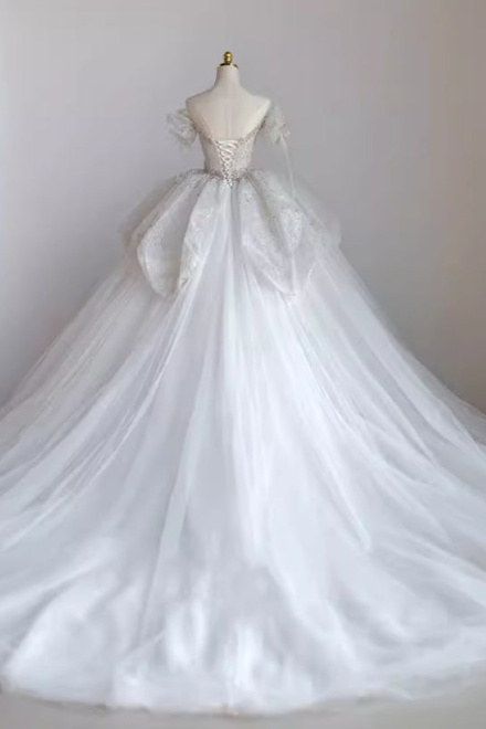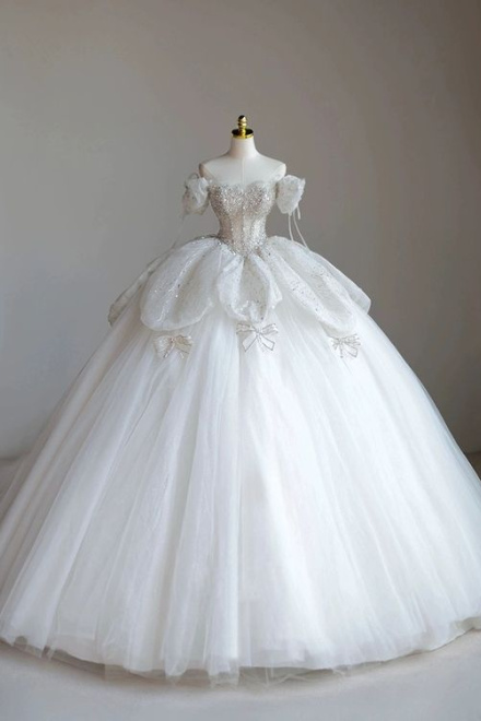 Sparkly Ball Gown Wedding Dresses For Bride 2025 Sweetheart Neckline Beading Sequins Short Sleeve Off The Shoulder Bridal Dresses
