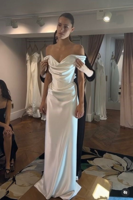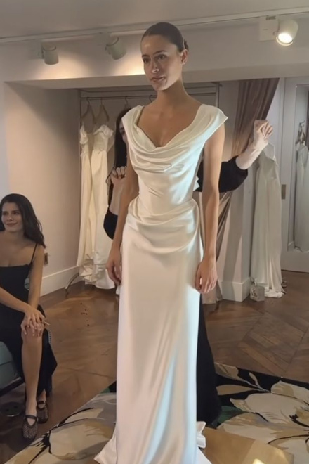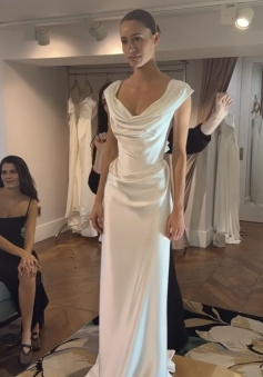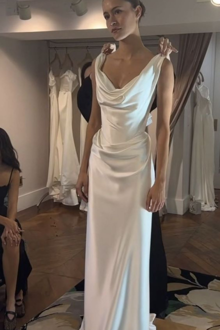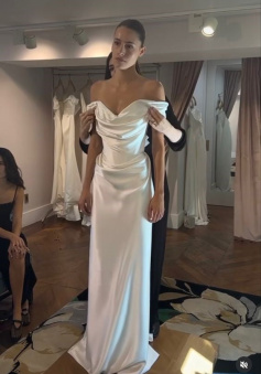 Sexy Sheath Off The Shoulder Satin Long Wedding Dresses