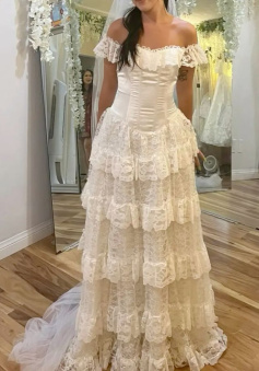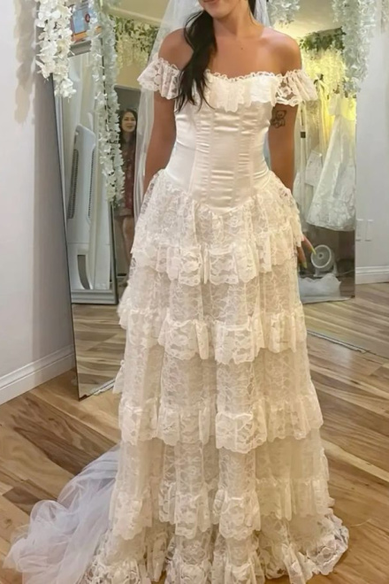 Wedding Dress Off The Shoulder A Line Lace Long Layered Formal Dresses