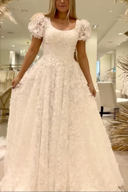 A Line Long Lace Prom Dress Wedding Dress Unique Bridal Gown