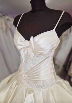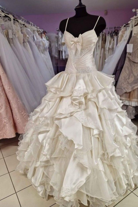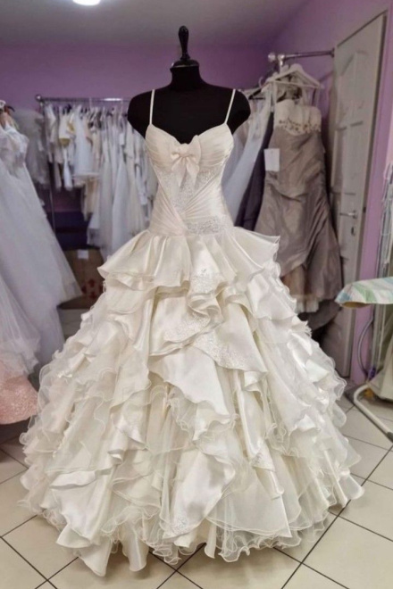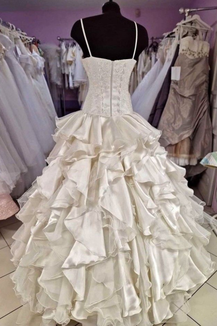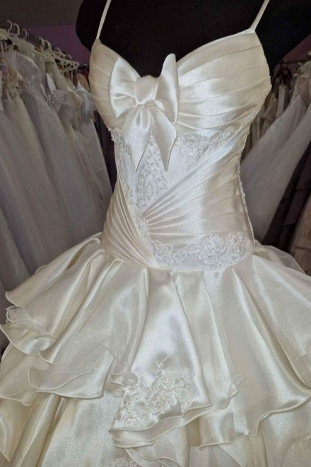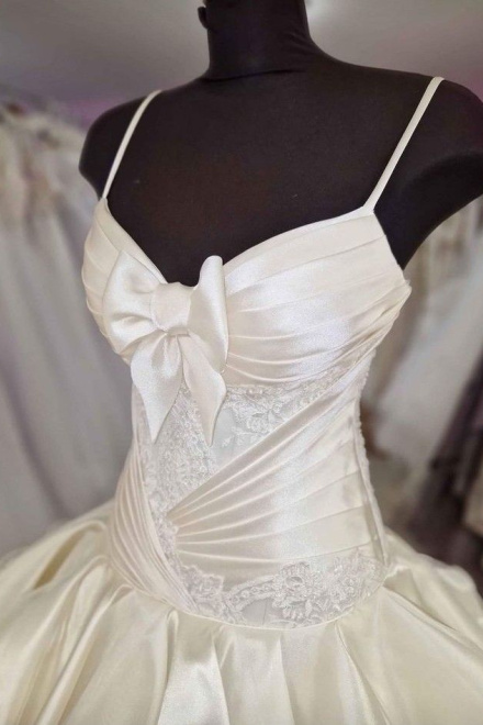 A Line Long Satin Lace Wedding Dress Spaghetti Straps Bridal Gown