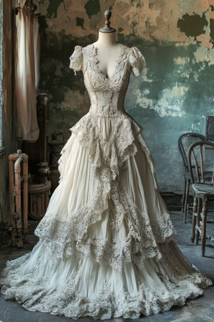 A Line Ivory Lace V Neck Wedding Dress Long Bridal Gown