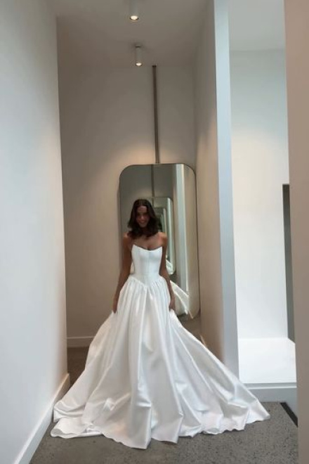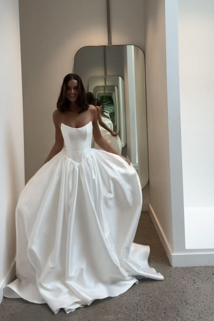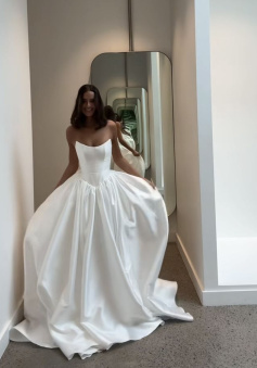 Stunning Ball Gown Strapless Satin Wedding Dresses