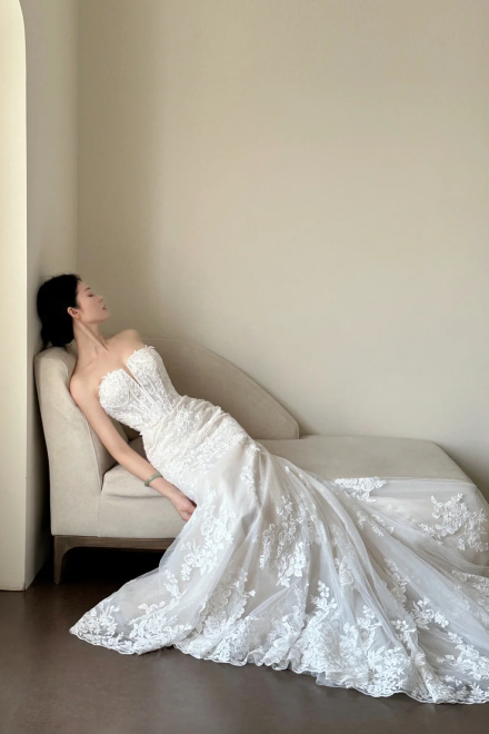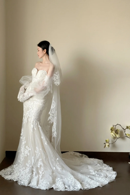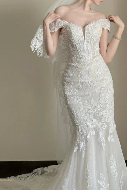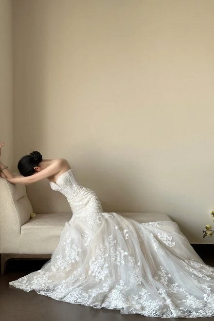 Luxury Women's Elegant Wedding Dresses Lace Side Split Sexy Princess Bridal Gown