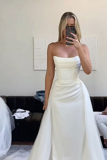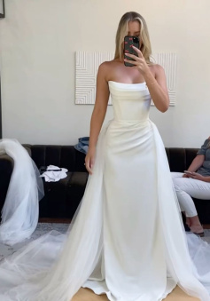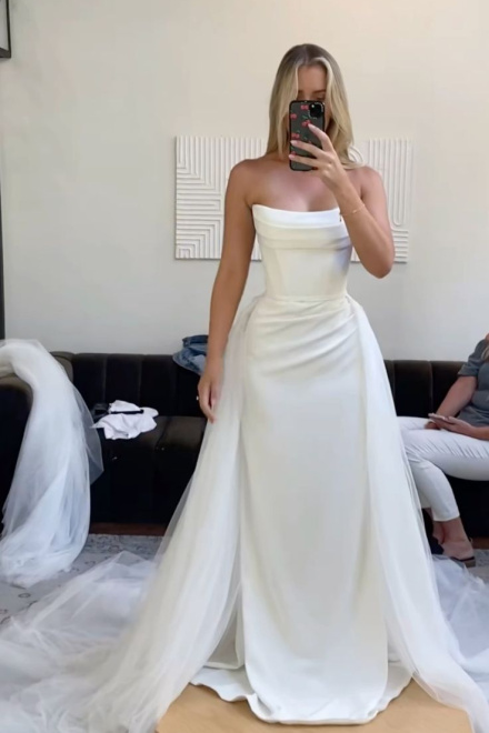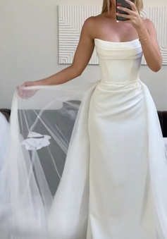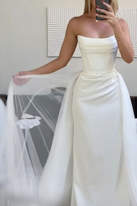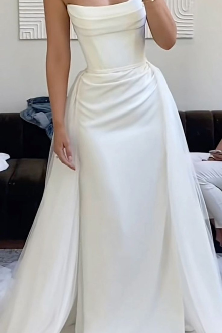 White Strapless Long Wedding Dress Princess Bridal Gown