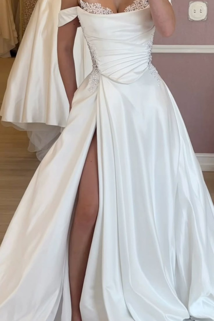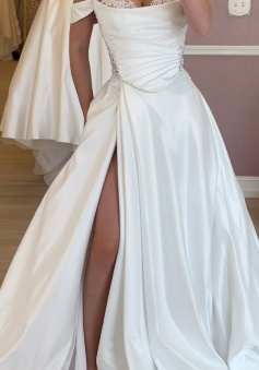 Off Shoulder Long Satin Wedding Dress Bridal Gown