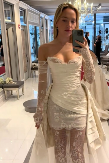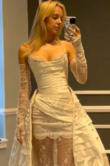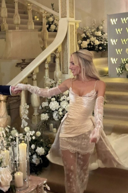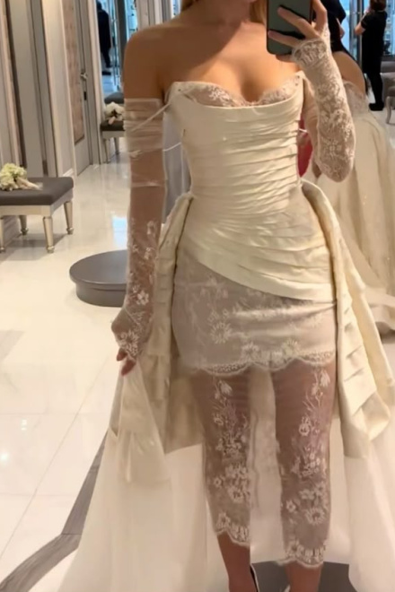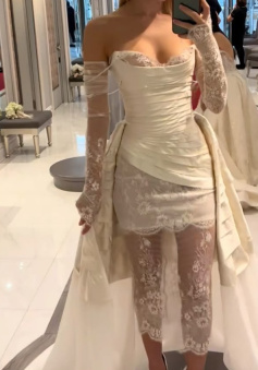 Elegant Spaghetti Strap Satin Lace Wedding Dress Bridal Gown