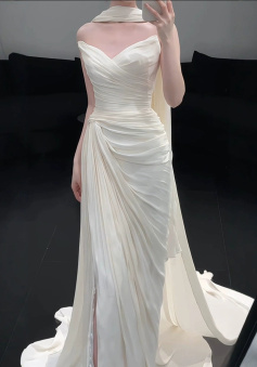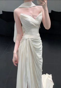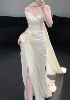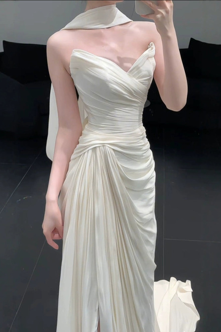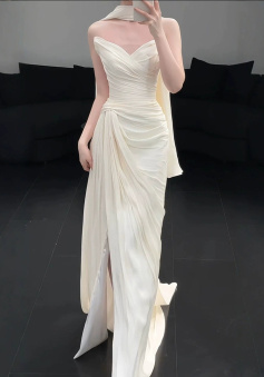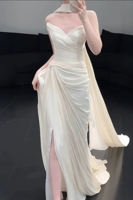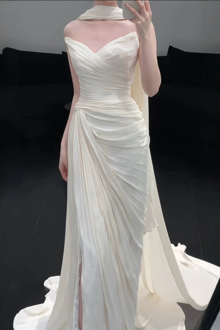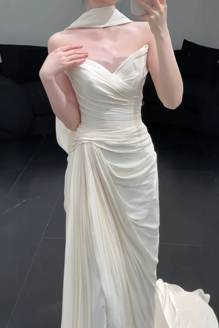 Strapless Pleat Long Wedding Dress Evening Party Dresses