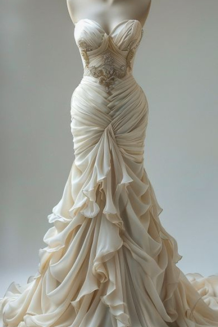 Vintage Mermaid Strapless Chiffon Prom Dresses Wedding Dress