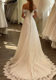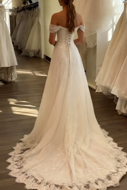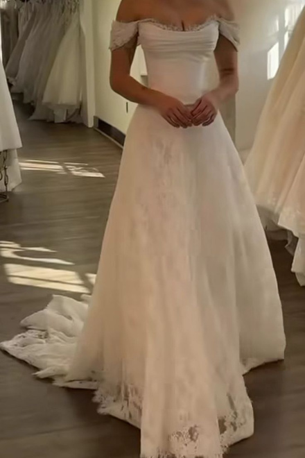 A Line White Off Shoulder Long Princess Wedding Dress