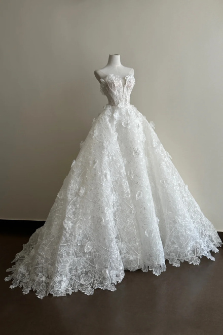 Sweetheart White Lace Flora Wedding Dress Evening Dress Birthday Dress