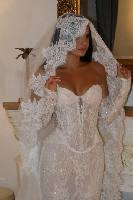 Vintage Mermaid Wedding Dresses Lace Bodycon Bridal Dress