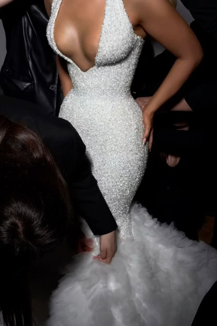 Sexy Mermaid White Wedding Dress Sequin Evening Dress Prom Dress