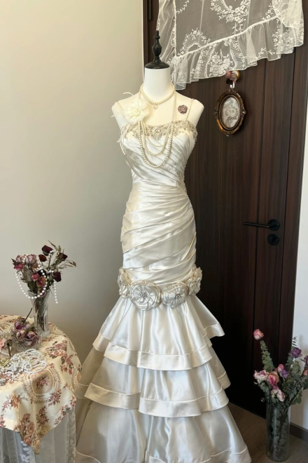 Sleeveless White Wedding Dress Mermaid Bride Dress