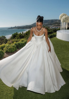 Spaghetti Straps White Wedding Dress Simple Bride Gown